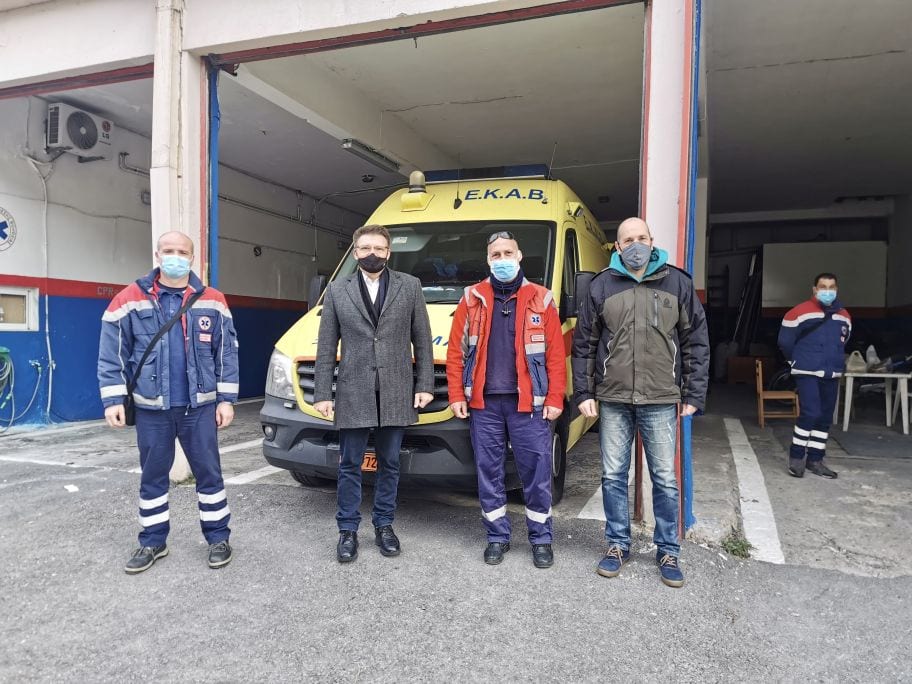 - Στο προσωπικό του ΕΚΑΒ, όπου συνομίλησε με τον Πρόεδρο των εργαζομένων Σταύρο Καμπουραντώνη
