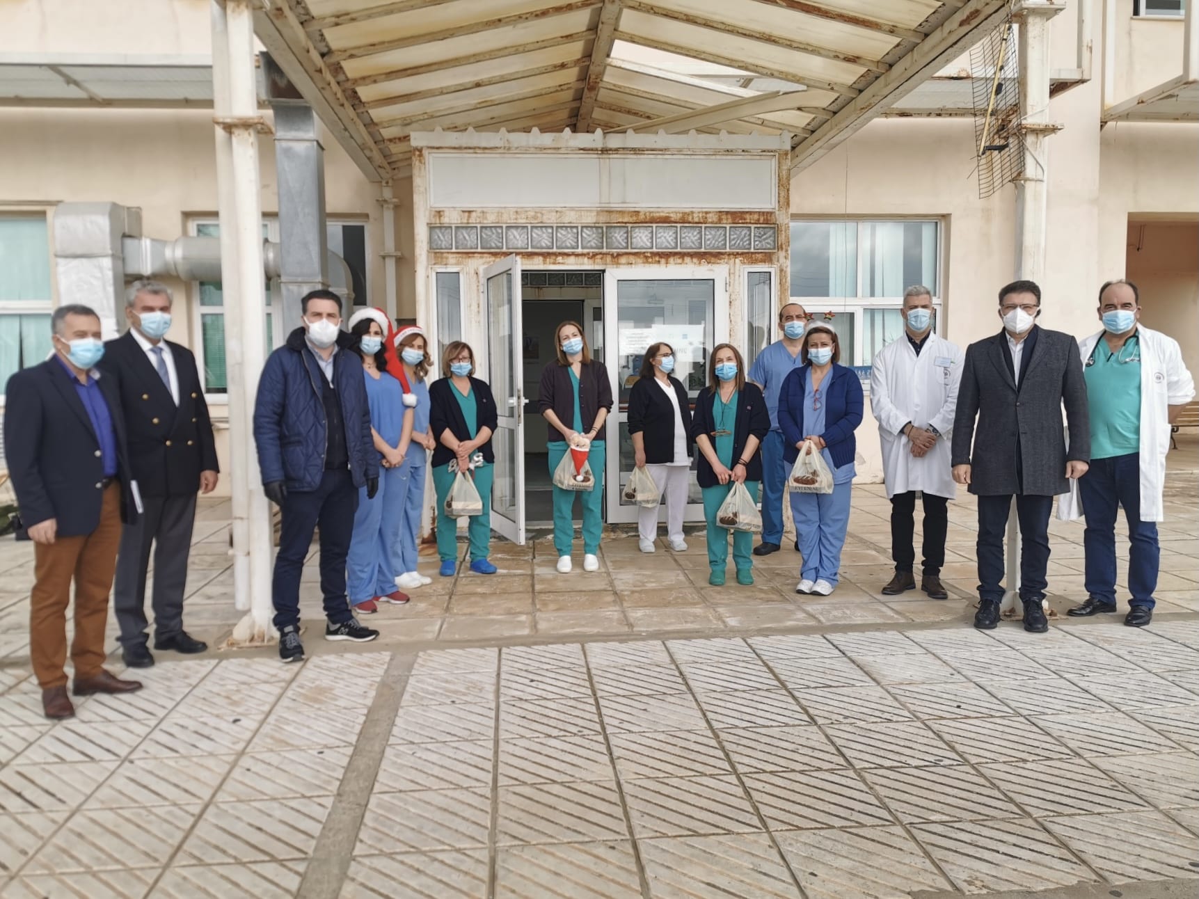 - Στον εξωτερικό χώρο της Μονάδας Ειδικών Λοιμώξεων (COVID-19) του Γενικού Πανεπιστημιακού Νοσοκομείου Αλεξανδρούπολης, όπου ευχήθηκε στον Διοικητή του Νοσοκομείου Ευάγγελο Ρούφο, στον Διευθυντή Ιατρικής Υπηρεσίας Γεώργιο Δρόσο, στον Διευθυντή της Μονάδας Ειδικών Λοιμώξεων, Καθηγητή Παθολογίας Δημήτριο Παπάζογλου, στον Διευθυντή της Νοσηλευτικής Υπηρεσίας Θάνο Γκουτζιβελάκη, στις Προϊστάμενες των Μονάδων Ειδικών Λοιμώξεων, Επειγόντων Περιστατικών και Εντατικής Θεραπείας
