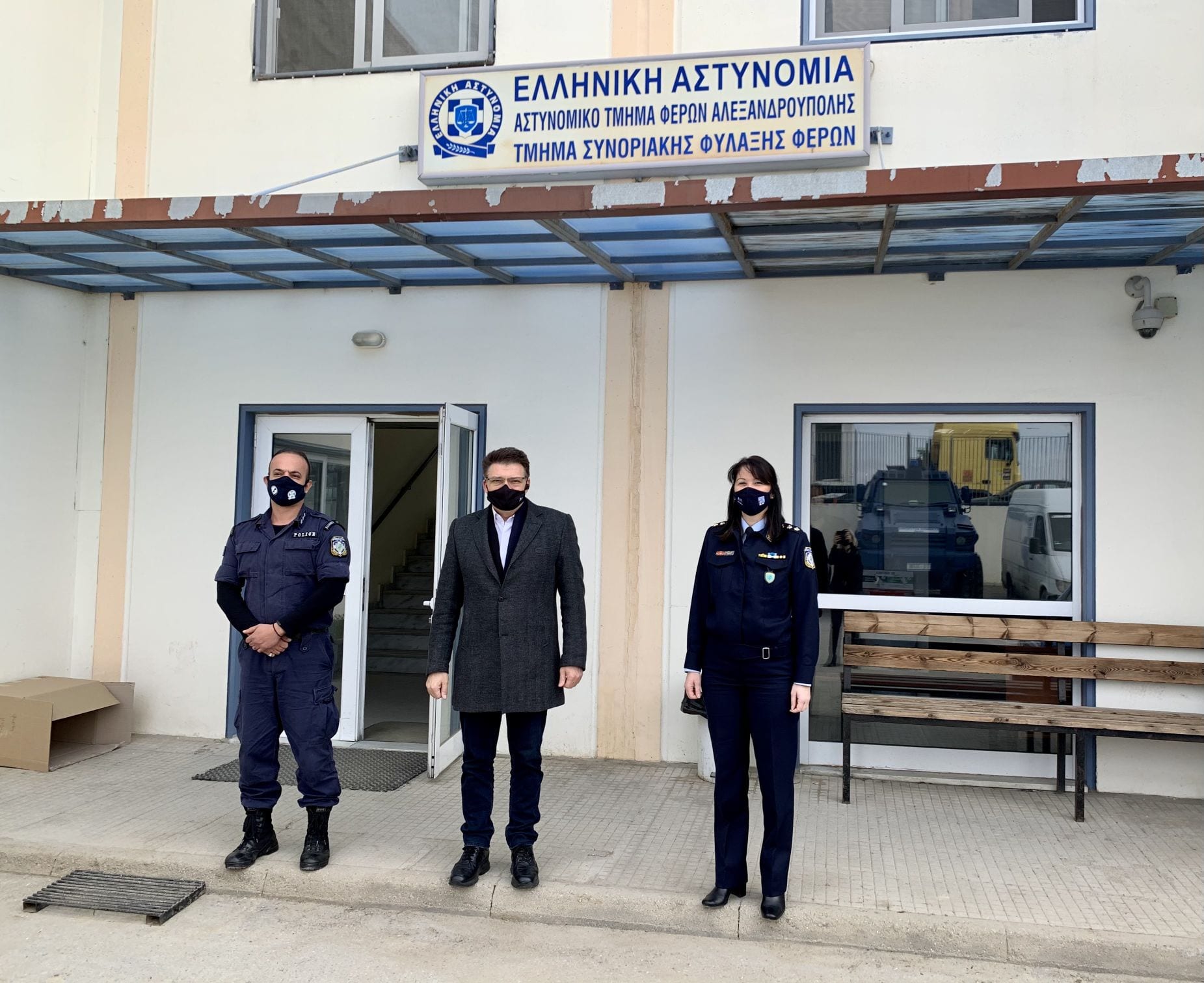 - Στο Τμήμα Συνοριακής Φύλαξης Φερών, όπου βρέθηκε με την Υποδιευθύντρια της Αστυνομικής Διεύθυνσης Αλεξανδρούπολης Κυριακή Κερέμη και τον Διοικητή του Τμήματος Κωνσταντίνο Γάκη