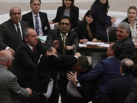 Σε «ρινγκ» μετατράπηκε το τουρκικό κοινοβούλιο, καθώς βουλευτές του κυβερνητικού κόμματος ΑΚΡ και της αντιπολίτευσης πιάστηκαν στα χέρια.