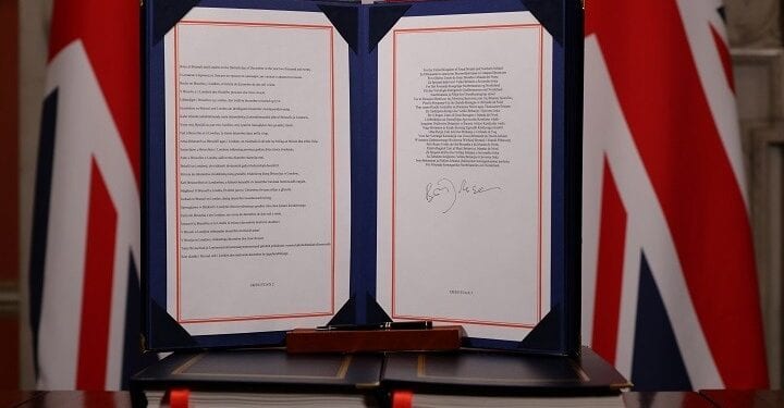 Η συμφωνία οικονομικής και εμπορικής σύμπραξης ανάμεσα στην Ευρωπαϊκή Ενωση και το Ηνωμένο Βασίλειο, ένα κείμενο 1.246 σελίδων, υπογράφτηκε χθες και ορίζει το πλαίσιο που θα διέπει από αύριο τις σχέσεις τους.