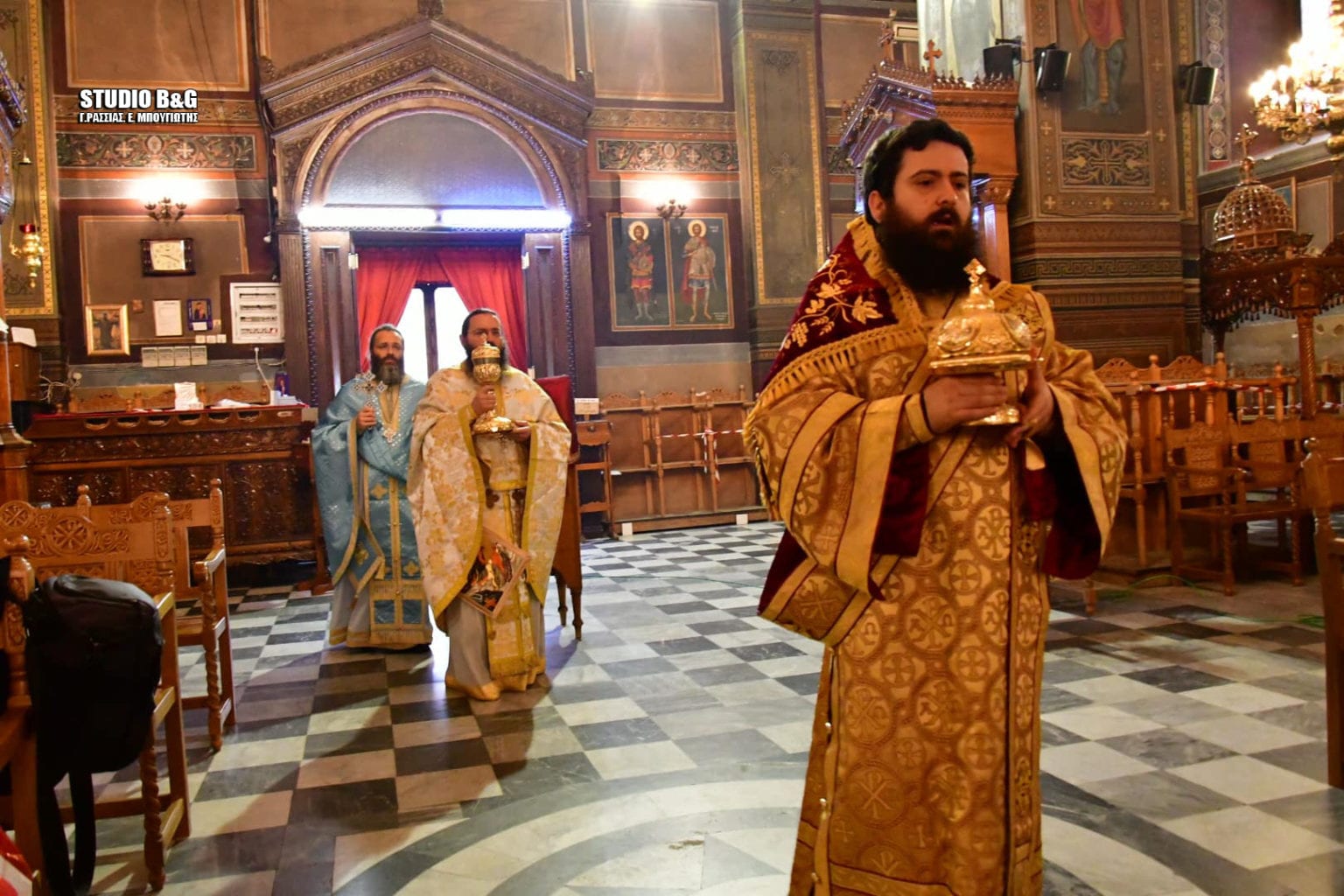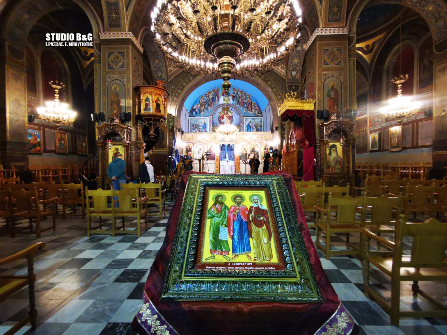 Στον Μητροπολιτικό Ναό του Αγίου Γεωργίου Ναυπλίου τελέσθηκε αρχιερατική Θεία Λειτουργία (κεκλεισμένων των θυρών λόγω κορονοϊού), προεξάρχοντος του μητροπολίτη Αργολίδος Νεκταρίου, εκπροσωπώντας τον Αρχιεπίσκοπο Αθηνών και πάσης Ελλάδος κ. Ιερώνυμο ο οποίος δεν παραβρέθηκε στους εορτασμούς λόγω της πανδημίας.