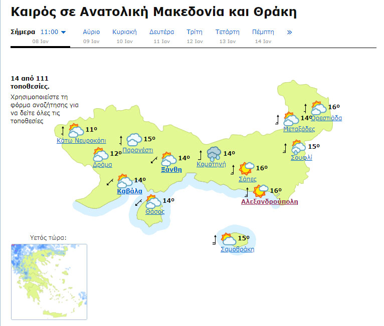 - Καιρός: Λίγες νεφώσεις κατά διαστήματα αυξημένες με τοπικές βροχές. Λίγα χιόνια θα πέσουν στα ορεινά της Μακεδονίας τις πρωινές ώρες.