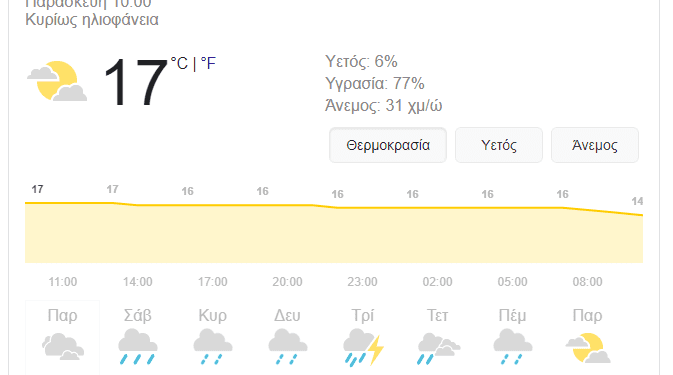 - Καιρός: Λίγες νεφώσεις κατά διαστήματα αυξημένες.