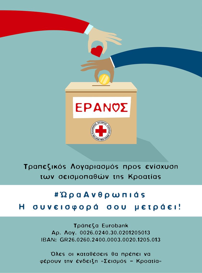 Ο Ελληνικός Ερυθρός Σταυρός, με πρωτοβουλία του Προέδρου, Dr. Αντώνιου Αυγερινού, ανταποκρίνεται στη έκκληση για βοήθεια και προχωράει στο άνοιγμα τραπεζικού λογαριασμού για την ενίσχυση των σεισμόπληκτων της Κροατίας.