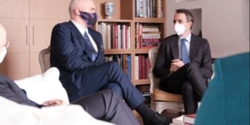 Ικανοποίηση για τη σταθερή βελτίωση των διμερών σχέσεων εξέφρασαν ο Κυριάκος Μητσοτάκης και ο Έντι Ράμα, κατά τη διάρκεια του γεύματος που παρέθεσε νωρίτερα στην οικία του ο πρωθυπουργός προς τιμήν του πρωθυπουργού της Αλβανίας, παρουσία του υπουργού Εξωτερικών Νίκου Δένδια.