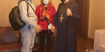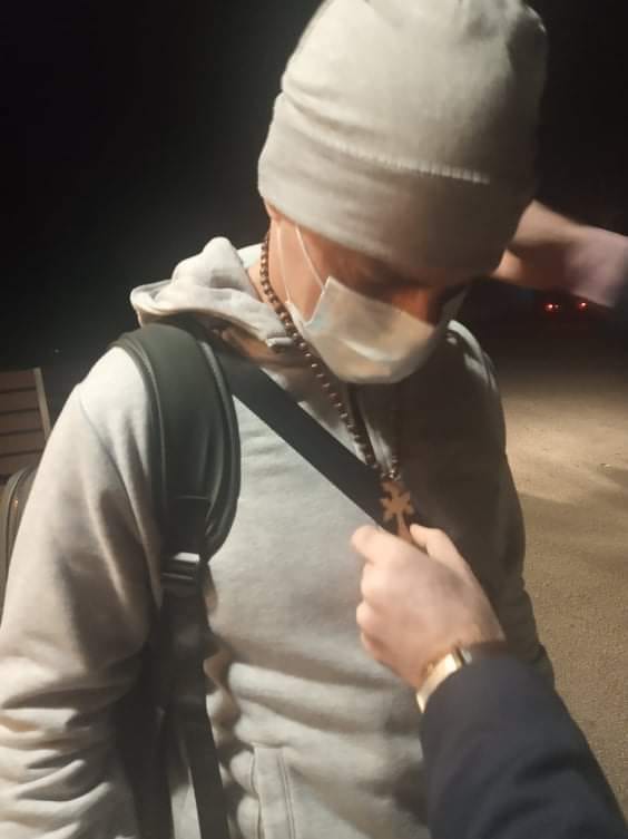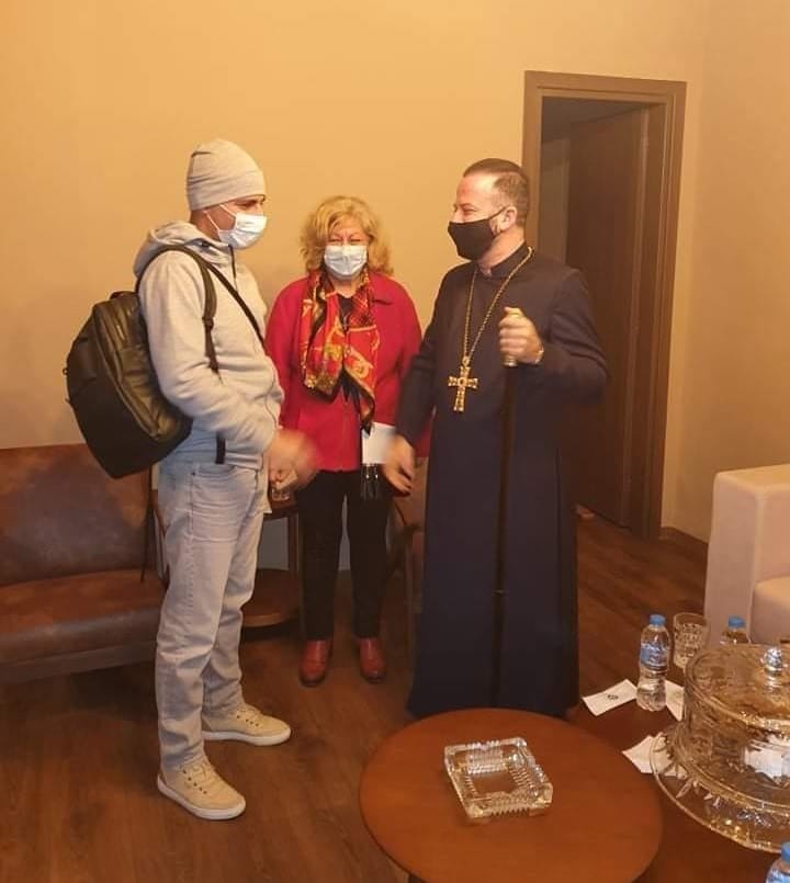 O Αρχ. Χορέν Αρακελιάν υποδέχτηκε τον Tigran και του φόρεσε ένα σταυρό για να τον προστατεύει και να του δώσει δύναμη.