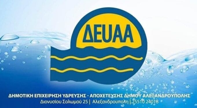 Τα έντονα καιρικά φαινόμενα που έπληξαν τις προηγούμενες ημέρες τον Δήμο Αλεξανδρούπολης είχαν ως αποτέλεσμα να υποστεί σοβαρή ζημιά ο κεντρικός αγωγός της ΔΕΥΑΑ και σε πολλές περιοχές να διακοπεί η παροχή νερού.