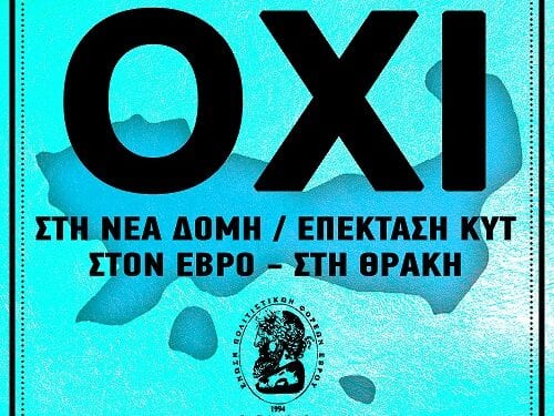 - Όχιστη δημιουργία νέας δομής μεταναστών/προσφύγων στο Φυλάκιο, στον Έβρο, στη Θράκη εν γένει.