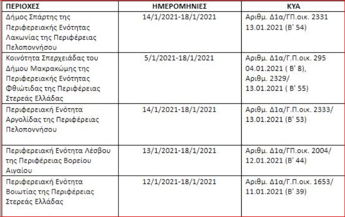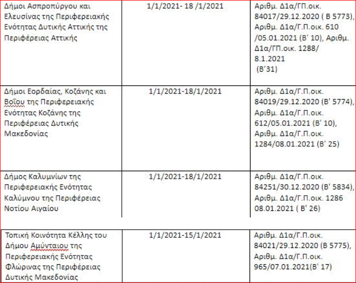 Επιπρόσθετα των όσων ισχύουν σε όλη την επικράτεια (βλ. Παραρτήματα), σε περιοχές που έχουν επιβληθεί έκτακτα μέτρα προστασίας της δημόσιας υγείας σύμφωνα με τις σχετικές κοινές υπουργικές αποφάσεις που έχουν εκδοθεί προς αντιμετώπιση της διασποράς του κορoνοϊού COVID-19 αναφορικά με την αναστολή λειτουργίας των ιδιωτικών επιχειρήσεων που έχουν έδρα ή υποκατάστημα ισχύουν τα ακόλουθα: