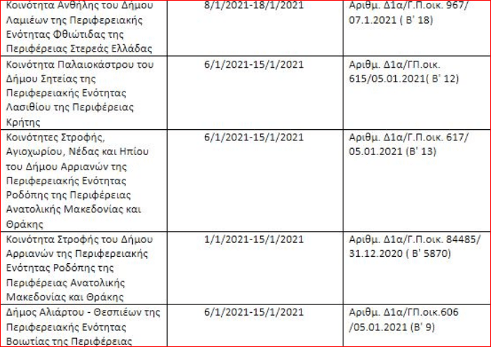 Οι δηλώσεις αναστολών συμβάσεων εργασίας εργαζομένων (και ορθές επαναλήψεις) από επιχειρήσεις – εργοδότες των οποίων η λειτουργία έχει με εντολή δημόσιας αρχής για το χρονικό διάστημα από 1/1/2021 έως και 18/1/2021, υποβάλλονται βάσει ΚΑΔ, σύμφωνα με τα ΠΑΡΑΡΤΗΜΑΤΑ Α΄ και Β΄ (επισυνάπτονται). Οι δηλώσεις αναστολών συμβάσεων εργασίας εργαζομένων (και ορθές επαναλήψεις) από επιχειρήσεις – εργοδότες που πλήττονται βάσει ΚΑΔ για το χρονικό διάστημα από 1/1/2021 έως και 31/1/2021, υποβάλλονται βάσει ΚΑΔ, σύμφωνα με το ΠΑΡΑΡΤΗΜΑ Γ΄ (επισυνάπτεται).
