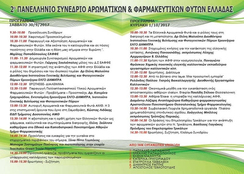 Το πρόγραμμα για το 2ο Πανελλήνιο Συνέδριο Αρωματικών και Φαρμακευτικών Φυτών: