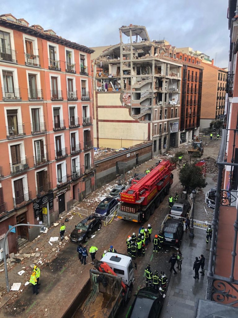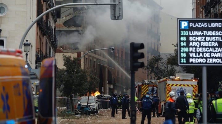 Οι υπηρεσίες πρώτων βοηθειών της Μαδρίτης ανακοίνωσαν ότι όλες οι διαθέσιμες ενδείξεις παραπέμπουν στο ότι η έκρηξη που σημειώθηκε στο Κάγιε Τολέδο, έναν δρόμο που οδηγεί εκτός του κέντρου της πόλης, προκλήθηκε από διαρροή φυσικού αερίου.