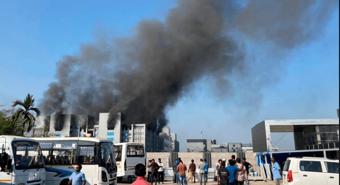 Ινδικά τηλεοπτικά δίκτυα μετέδωσαν εικόνες από ένα τεράστιο σύννεφο γκρίζου καπνού που υψωνόταν πάνω από το Serum Institute στην Πούνε, όπου αυτή την περίοδο παρασκευάζονται εκατομμύρια δόσεις του εμβολίου κατά της covid-19 της AstraZeneca και του πανεπιστημίου της Οξφόρδης.