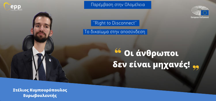 Tο δικαίωμα στην αποσύνδεση είναι ζωτικής σημασίας για την προστασία της ψυχικής και σωματικής υγείας των εργαζομένων και πρέπει να αποτελέσει ένα σημαντικό μέσο της κοινωνικής μας πολιτικής. Αυτό ήταν το κεντρικό μήνυμα του Στέλιου Κυμπουρόπουλου, στα πλαίσια της παρέμβασης του στην Ολομέλεια του Ευρωπαϊκού Κοινοβουλίου.