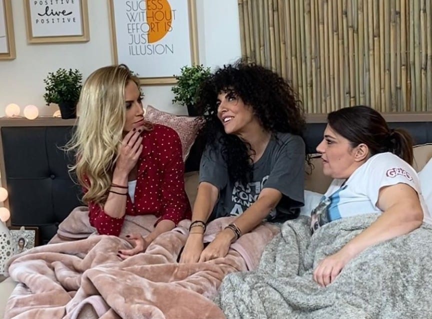 Ας πούμε, εμένα μου αρέσει περισσότερο το θέατρο, το σινεμά κ.λπ. Της Ντορέττας ο φιτ τρόπος ζωής. Της Μαρίας η διακόσμηση… Ε λοιπόν, ας πούμε ότι είμαστε 3 γυναίκες που κάνουν σε ένα σπίτι ότι θα έκαναν 3 γυναίκες που λόγω συνθηκών θα έπρεπε να είναι κλεισμένες σε ένα σπίτι.