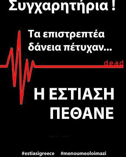 Ενώ εδώ και Δέκα (10) μήνες ο κλάδος καταστρέφεται, εσείς περηφανεύεστε για την επιτυχία εικονικών αριθμών, δεν βλέπετε το τσουνάμι των χιλιάδων λουκέτων και απολύσεων ενω αγνοείται την αδυναμία πληρωμής των υποχρεώσεων που μας επιβαρύνουν οι δικές σας επιλογές .