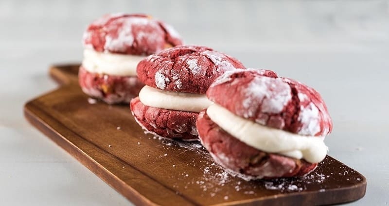 Μεταφέρουμε την κρέμα σε ένα κορνέ και απλώνουμε λίγη από τη γέμιση στα μισά μπισκότα.