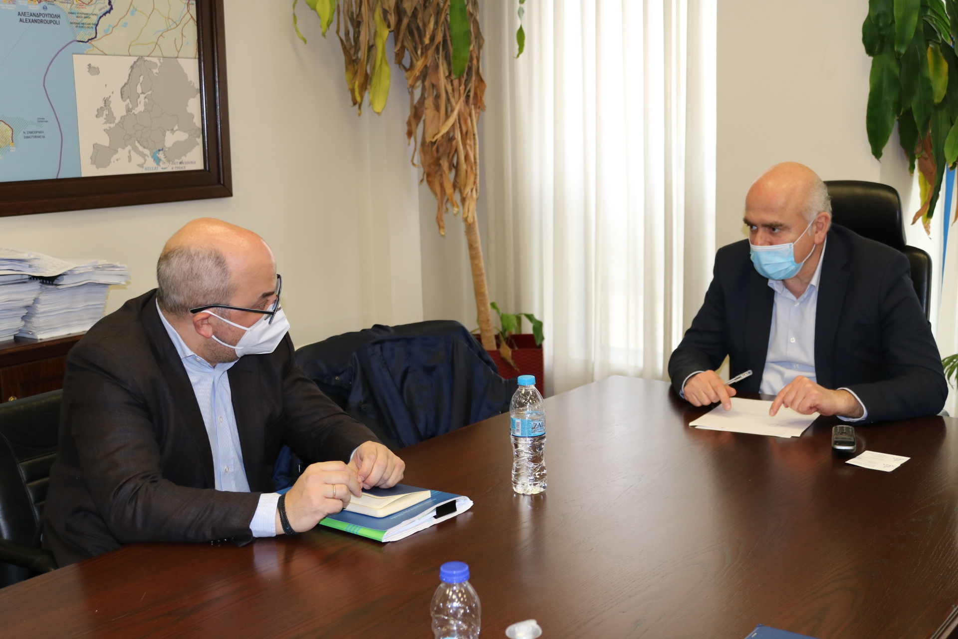 Αντικείμενο της συνάντησης ήταν το έργο κατασκευής δικτύων φυσικού αερίου στην Περιφέρεια ΑΜΘ, το οποίο η Περιφέρεια χρηματοδοτεί με πόρους 29,6 εκατομμυρίων ευρώ από το ΕΣΠΑ.