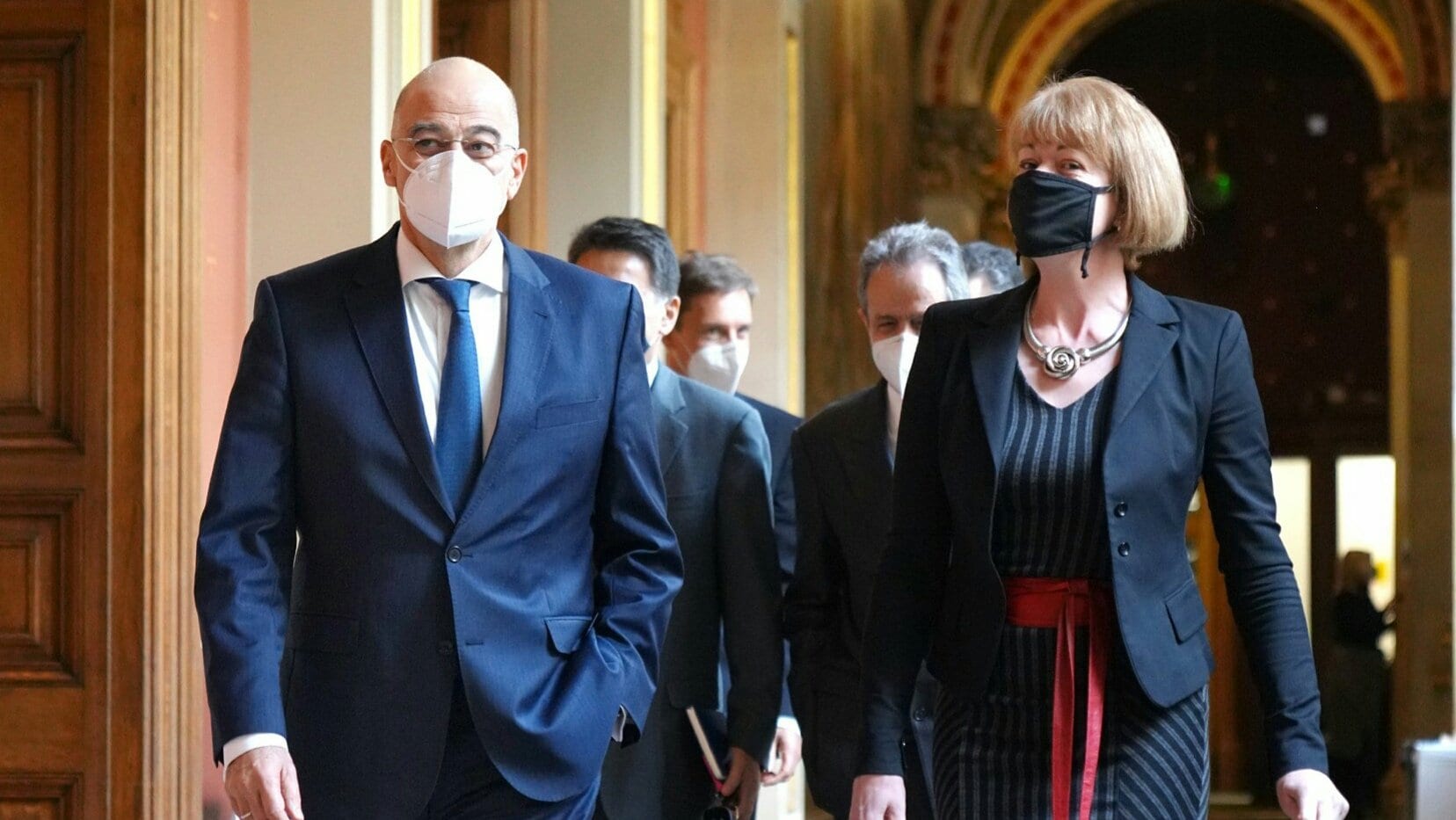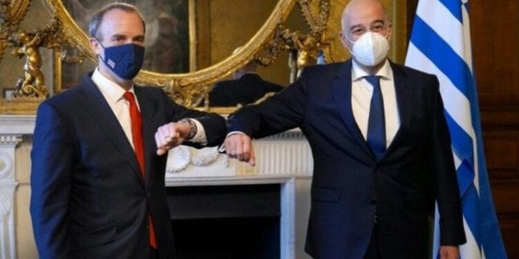 Εκτενή συνομιλία είχε με τον Βρετανό υπουργό Εξωτερικών Ντόμινικ Ράαμπ (Dominic Raab) ο υπουργός Εξωτερικών Νίκος Δένδιας, χθες στο Λονδίνο, όπου παρατηρήθηκε σύμπτωση απόψεων όσον αφορά το Κυπριακό, αλλά και την ανάγκη εφαρμογής του Διεθνούς Δικαίου για την επίλυση των διαφορών, όπως επισημαίνουν διπλωματικές πηγές.