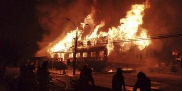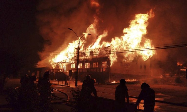 Διαδηλωτές έβαλαν φωτιά στο δημαρχείο της πόλης Πανγκιπούλι, περίπου 950 χιλιόμετρα νότια από την πρωτεύουσα Σαντιάγο, καταγράφει βίντεο που μεταφόρτωσε στον ιστότοπό του ο ραδιοφωνικός σταθμός cooperativa.