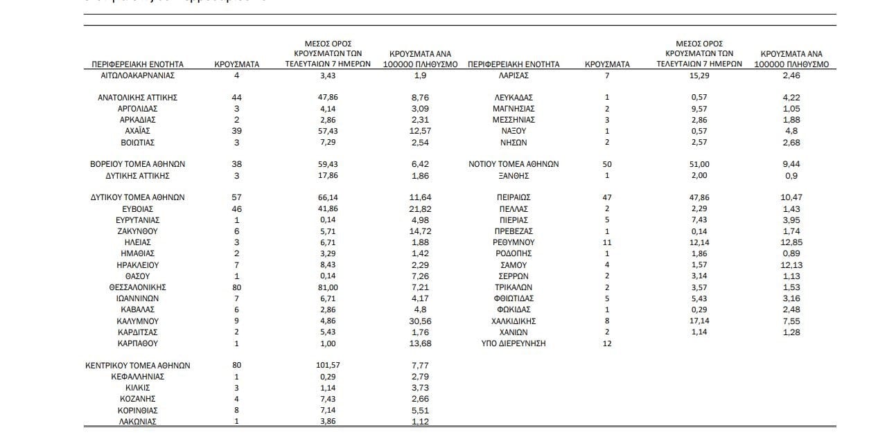 Ανησυχία υπάρχει για τη Θεσσαλονίκη, στην οποία καταγράφηκαν 80 κρούσματα, αλλά και για την Εύβοια που μετρά 46 νέα κρούσματα και την Αχαΐα που έχει 37.