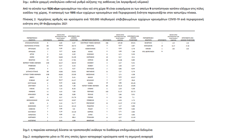 Στα 1.526 ανήλθαν σήμερα τα νέα κρούσματα της λοίμωξης του κορωνοϊού (COVID-19), εκ των οποίων 9 εντοπίστηκαν κατόπιν ελέγχων στις πύλες εισόδου της χώρας.