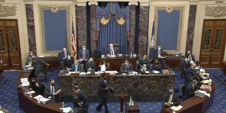 Η τελική ψηφοφορία 56-44 σηματοδότησε το τελευταίο κεφάλαιο των εργασιών της Τρίτης, με τη Γερουσία να αναβάλλεται μέχρι την Τετάρτη το μεσημέρι. Όλοι οι έξι γερουσιαστές από τους Ρεπουμπλικάνους ψήφισαν ότι η δίκη είναι αντισυνταγματική επειδή ο Τραμπ δεν είναι πλέον πρόεδρος. Ήταν η δεύτερη φορά μιας τέτοιας ψηφοφορίας αφού ο γερουσιαστής Rand Paul, Ρεπουμπλικανός του Κεντάκυ, ανάγκασε την ψηφοφορία για την ίδια ερώτηση τον προηγούμενο μήνα.