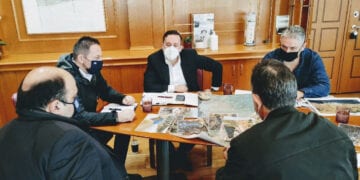 Οι κ.κ. Πέτσας και Τριαντόπουλος ενημερώθηκαν εκτενώς για τις καταστροφές που υπέστη το δίκτυο του αγωγού μεταφοράς νερού του Δήμου Αλεξανδρούπολης μετά τα επαναλαμβανόμενα πλημμυρικά φαινόμενα, ενώ παρουσιάστηκαν σε χάρτες τα σημεία όπου προκλήθηκαν ζημιές σε οδικό δίκτυο, αγροτική οδοποιία, ιρλανδικές διαβάσεις, γέφυρες και πεζογέφυρες.