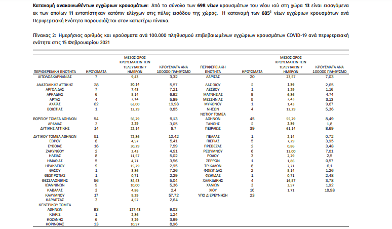 Τα νέα κρούσματα εντοπίστηκαν: