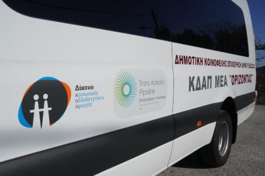 Ελλάδα. Ο Διαδριατικός Αγωγός Φυσικού Αερίου (TAP AG) υλοποίησε ακόμη μία πρωτοβουλία, στο πλαίσιο του προγράμματος Περιβαλλοντικών και Κοινωνικών Επενδύσεων που υλοποιεί στη Βόρεια Ελλάδα. Πρόκειται για την προμήθεια και παράδοση τριών ειδικών οχημάτων σε συλλόγους που δραστηριοποιούνται στην υποστήριξη και φροντίδα Ατόμων με Αναπηρία.