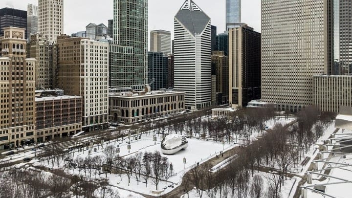 Βορειότερα, το Σικάγο βρίσκεται κάτω από ένα παχύ στρώμα χιονιού.