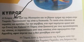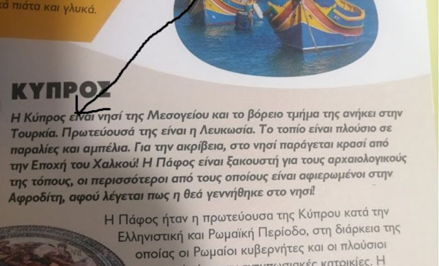 Συγκεκριμένα, αναφέρει πως «η Κύπρος είναι νησί της Μεσογείου και το βόρειο τμήμα της ανήκει στην Τουρκία».