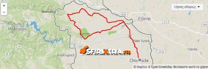 Η Διαδρομή του αγώνα των 112 χιλιομέτρων: Εκκίνηση από την Κεντρική Πλατεία Ορεστιάδας με κατεύθυνση βόρεια επί της Κωνσταντινουπόλεως,Έξοδος από τον βόρειο κόμβο της πόλης και είσοδος στον κάθετο άξονα της Εγνατίας οδού. Έξοδος στον κόμβο Δικαίων στην παλαιά εθνική οδό προς Ορμένιο, Πετρωτά, Πεντάλοφο, Κόμαρα, Ελιά, Πλάτη, Άρζο, Καναδά και είσοδος στον κάθετο άξονα της Εγνατίας οδού από κόμβο Μαρασίων με κατεύθυνση νότια προς Ορεστιάδα. Έξοδος στον βόριο κόμβο Ορεστιάδας (με φωτεινή σηματοδότηση) επί της Κωνσταντινουπόλεως προς την Κεντρική Πλατεία Ορεστιάδας (τερματισμός).