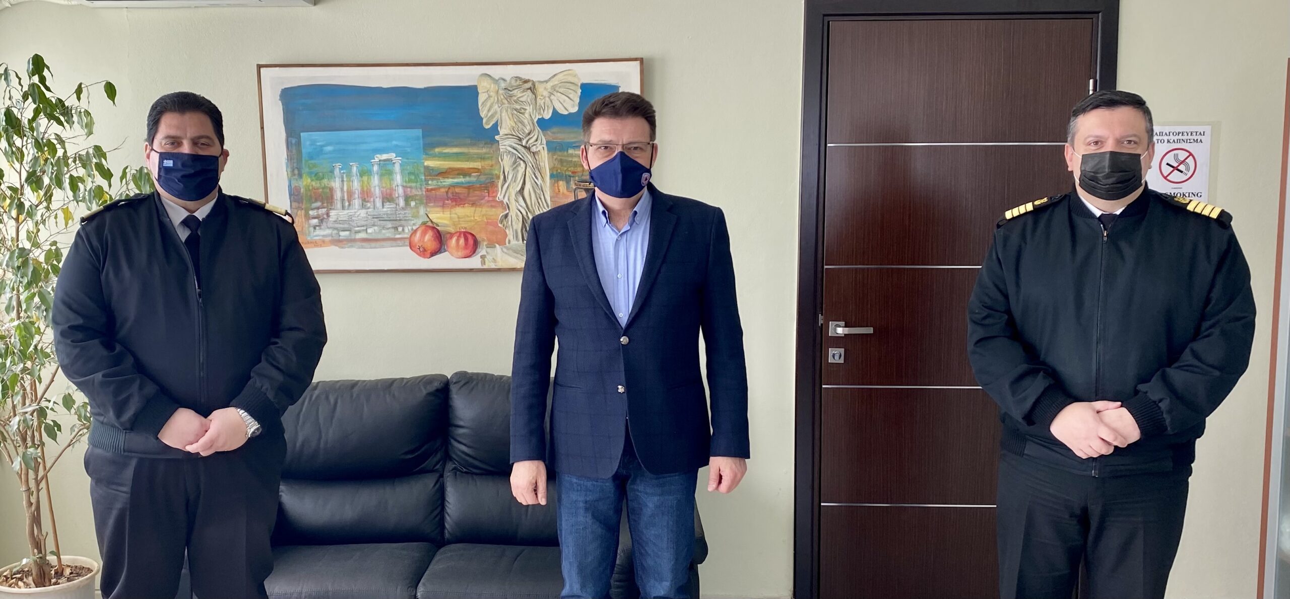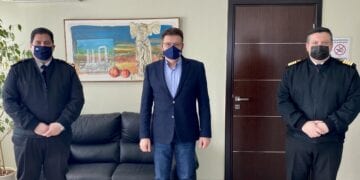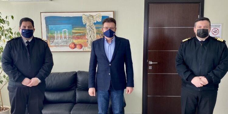 Ο Αντιπεριφερειάρχης Έβρου Δημήτριος Πέτροβιτς δέχτηκε στο γραφείο του τον Διοικητή της 2ης Περιφερειακής Διεύθυνσης Λιμενικού Σώματος-Ελληνικής Ακτοφυλακής, Αρχιπλοίαρχο Σπυρίδωνα Ευαγγελίδη, συνοδευόμενο από τον Λιμενάρχη Αλεξανδρούπολης, Πλοίαρχο Ευστράτιο Ψύρρα.