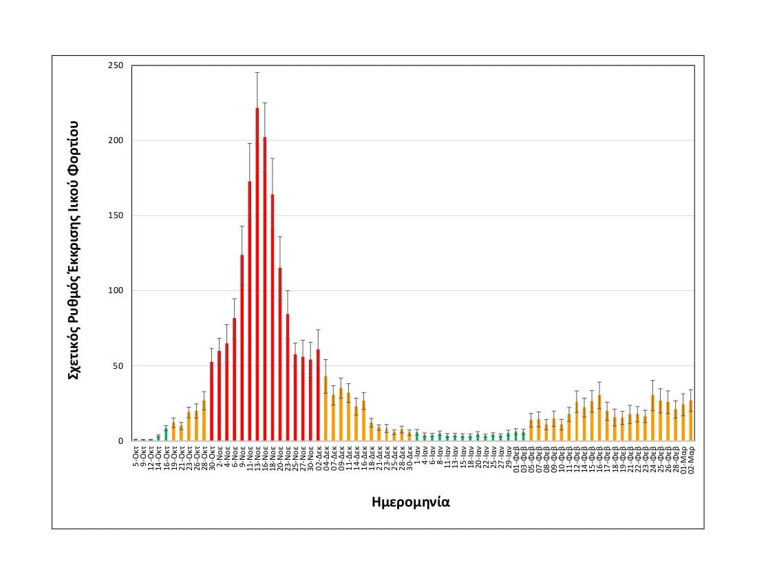 Συγκεκριμένα, η μέση τιμή των δύο πιο πρόσφατων μετρήσεων, δηλαδή της Δευτέρας 01/03 και της Τρίτης 02/03, είναι αυξημένη κατά 10% σε σχέση τη μέση τιμή των δύο αμέσως προηγούμενων μετρήσεων, δηλαδή της Παρασκευής 26/2 και της Κυριακής 28/2 . Συγκρίνοντας τις μετρήσεις αυτής της Δευτέρας και Τρίτης σε σχέση με τις αντίστοιχες της Δευτέρας 22/2 και Τρίτης 23/2, η μέση τιμή είναι αυξημένη κατά 50%, δίνοντας μια πιο ξεκάθαρη εικόνα της σταδιακής ανοδικής πορείας.