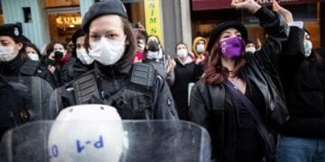 Περίπου 1.000 γυναίκες συγκεντρώθηκαν σήμερα κοντά στην Πλατεία Ταξίμ της Κωνσταντινούπολης για να καταγγείλουν την αδράνεια, όπως λένε, των αρχών, που δεν αποτρέπουν και δεν τιμωρούν τη βία σε βάρος των γυναικών, σε μια χώρα που οι γυναικοκτονίες έχουν εκτοξευθεί τα τελευταία χρόνια.