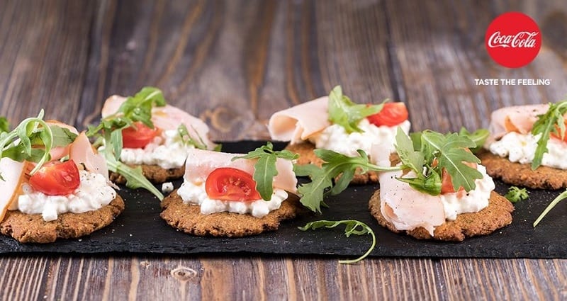 Σερβίρουμε με το τυρί cottage, τη γαλοπούλα, τα τοματίνια, τη ρόκα, το ελαιόλαδο και πιπέρι.