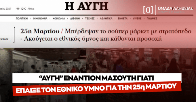 Αφορμή για τους ελληνόφωνες διαχειριστές της φυλλάδας η ενέργεια των Super Market Μασούτης τις ημέρες της Εθνικής Επετείου του 1821 έπαιζαν στα υποκαταστήματα επετειακά τραγούδια και τον εθνικό ύμνο. Προφανώς οι εθνομηδενιστυές κρατικοδίαιτοι υπάλληλοι της Κουμουνδούρου θα επιθυμούσαν να ακούγονταν τούρκικοι αμανέδες και κηρύγματα ιμάμηδων. Δεν μπορούν να κρατήσουν ούτε τα προσχήματα, οι πωλητές της Μακεδονίας.