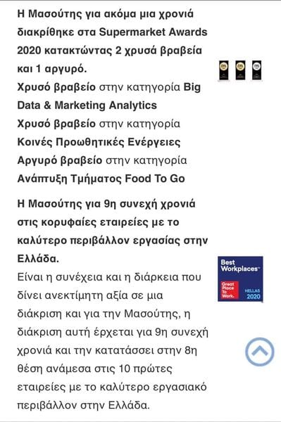 Η εταιρεία για ένατη (9) συνεχόμενη χρονιά είναι στις κορυφαίες εταιρείες με το καλύτερο εργασιακό περιβάλλον,( μέσα στις 10 καλύτερες ), ενώ ξεχωρίζει για την ποιότητα και τις προσφορές της στο αγοραστικό κοινό.