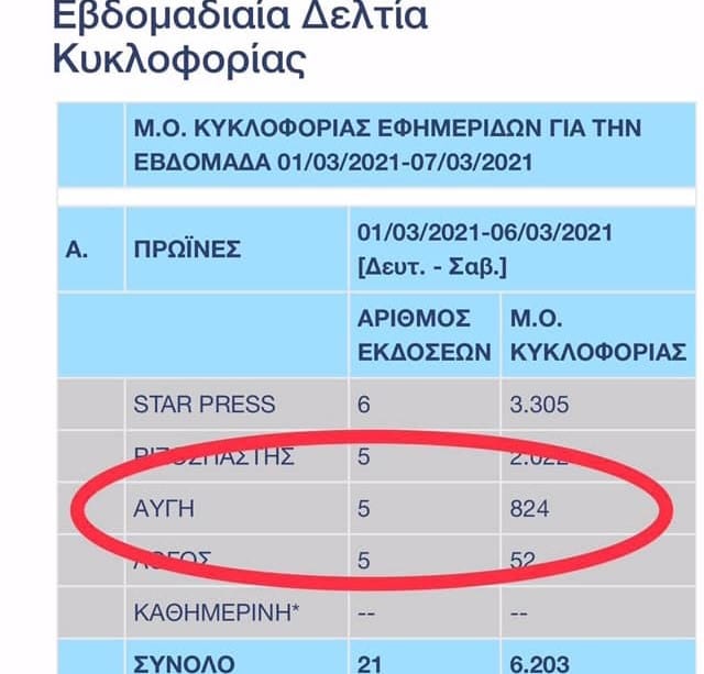 Η εφημερίδα- εταιρεία «Αυγή» , πουλάει μέσο όρο την ημέρα 824 φύλλα .