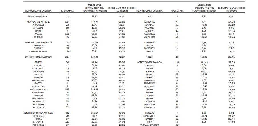 Μπορεί να χαλάρωσαν τα μέτρα, όμως η επιδημιολογική εικόνα της χώρας παραμένει σε τραγική κατάσταση με τα δεδομένα να επιτείνουν το φορτίο. Ξεπέρασαν τα όρια τους οι νοσοκομειακές μονάδες και οι ΜΕΘ ειδικά στην Αττική δεν ανταποκρίνονται στον αριθμό των ασθενών που χρήζουν νοσηλείας. Η Αττική παραμένει σε εκρηκτική κατάσταση με δεκάδες χιλιάδες ενεργά κρούσματα.