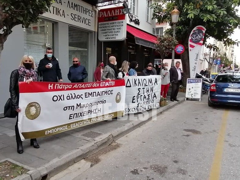 Σύμφωνα με το tempo24, oι έμποροι της Πάτρας από νωρίς το πρωί βρίσκονται στους κεντρικούς δρόμους της Πάτρας με πανό, αντιδρώντας στην απόφαση να μην ανοίξουν στην Αχαΐα τα καταστήματα. Μάλιστα στα πανό έγραφαν ότι η απόφαση για μη άνοιγμα του λιανεμπορίου συνιστά εμπαιγμό.