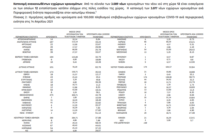 Αναλυτικά τα νέα κρούσματα εντοπίστηκαν: