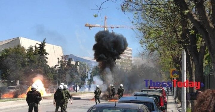 Σοβαρά επεισόδια βρίσκονται σε εξέλιξη στο κέντρο της Θεσσαλονίκης μεταξύ «διαδηλωτών» και αστυνομικών δυνάμεων. Η ένταση ξεκίνησε μετά το τέλος της πορείας φοιτητών κατά του νόμου για τα ΑΕΙ και την εγκατάσταση αστυνομικών δυνάμεων σε πέντε Πανεπιστημιακά Ιδρύματα. Σύμφωνα με πληροφορίες ομάδες διαδηλωτών ήρθαν σε σύγκρουση με τις αστυνομικές δυνάμεις χρησιμοποιώντας μεγάλο αριθμό βομβών μολότοφ. Πληροφορίες της ιστοσελίδας grtimes.gr αναφέρουν ότι από τα επεισόδια υπάρχει τραυματισμός διαδηλωτή.