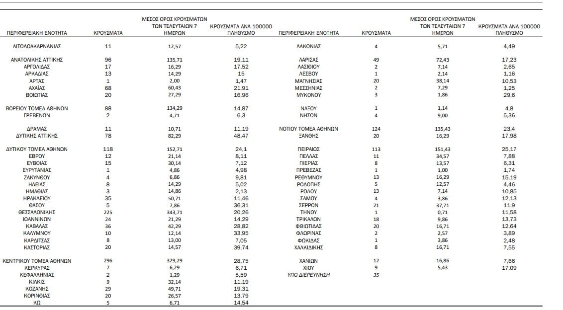 Τα νέα κρούσματα εντοπίστηκαν: