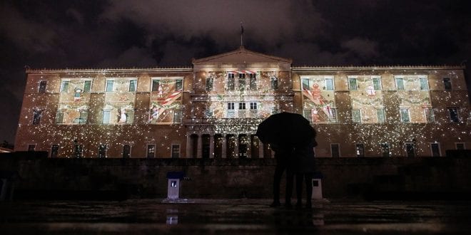 Live η τρισδιάστατη προβολή στην πρόσοψη από το κανάλι της Βουλής