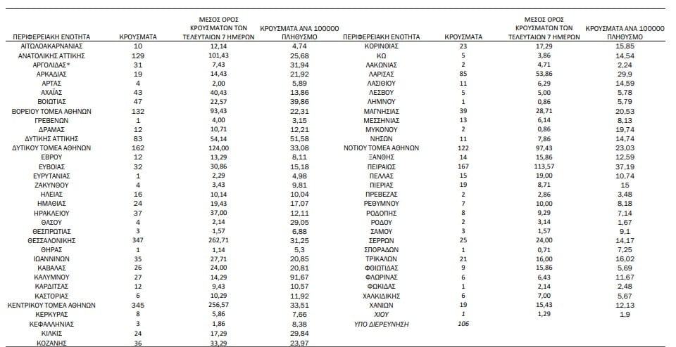 Τα νέα κρούσματα εντοπίστηκαν: