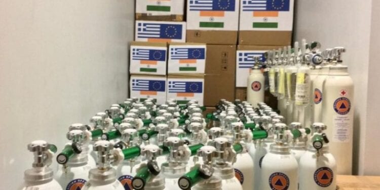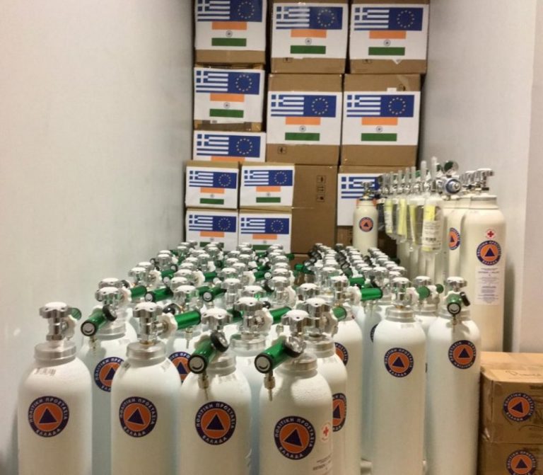 Η ελληνική κυβέρνηση ανταποκρινόμενη άμεσα στο αίτημα των ινδικών αρχών και μέσω του Ευρωπαϊκού Μηχανισμού Πολιτικής Προστασίας, αποστέλλει στην Ινδία, που δοκιμάζεται σκληρά από την πανδημία του κορονοϊού, 90 φιάλες οξυγόνου συνολικής χωρητικότητας 440 λίτρων, καθώς και υγειονομικό υλικό (μάσκες, γάντια και λοιπά μέσα αυτοπροστασίας). «Από την πρώτη στιγμή που έγινε γνωστό το αίτημα για παροχή συνδρομής, η Πολιτική Προστασία κινητοποιήθηκε για την προμήθεια των φιαλών οξυγόνου» τονίζεται σε χθεσινή ανακοίνωση της Πολιτικής Προστασίας.