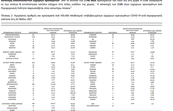 Με βάση τα επιβεβαιωμένα κρούσματα των τελευταίων 7 ημερών, 36 θεωρούνται σχετιζόμενα με ταξίδι από το εξωτερικό και 1.253 είναι σχετιζόμενα με ήδη γνωστό κρούσμα.